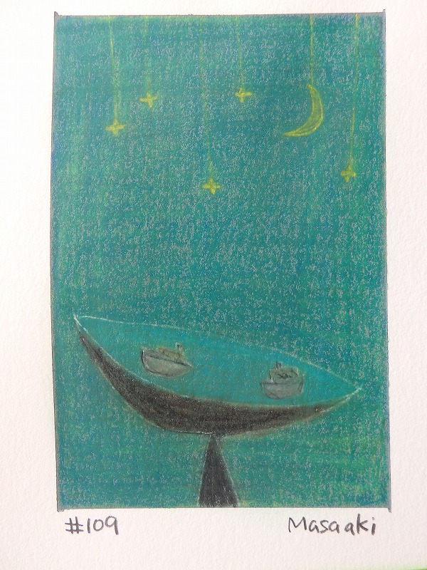 14cm×19cmの用紙に8cm×12cmの小さな作品を描いている。2L(12.7cm×17.8cm)サイズまたは葉書(10cm×14.8cm)サイズにカットして額に入れることを想定。画材は、色鉛筆、パステル、水彩絵具、油絵具、アクリル、ボールペン、版画 etc.。